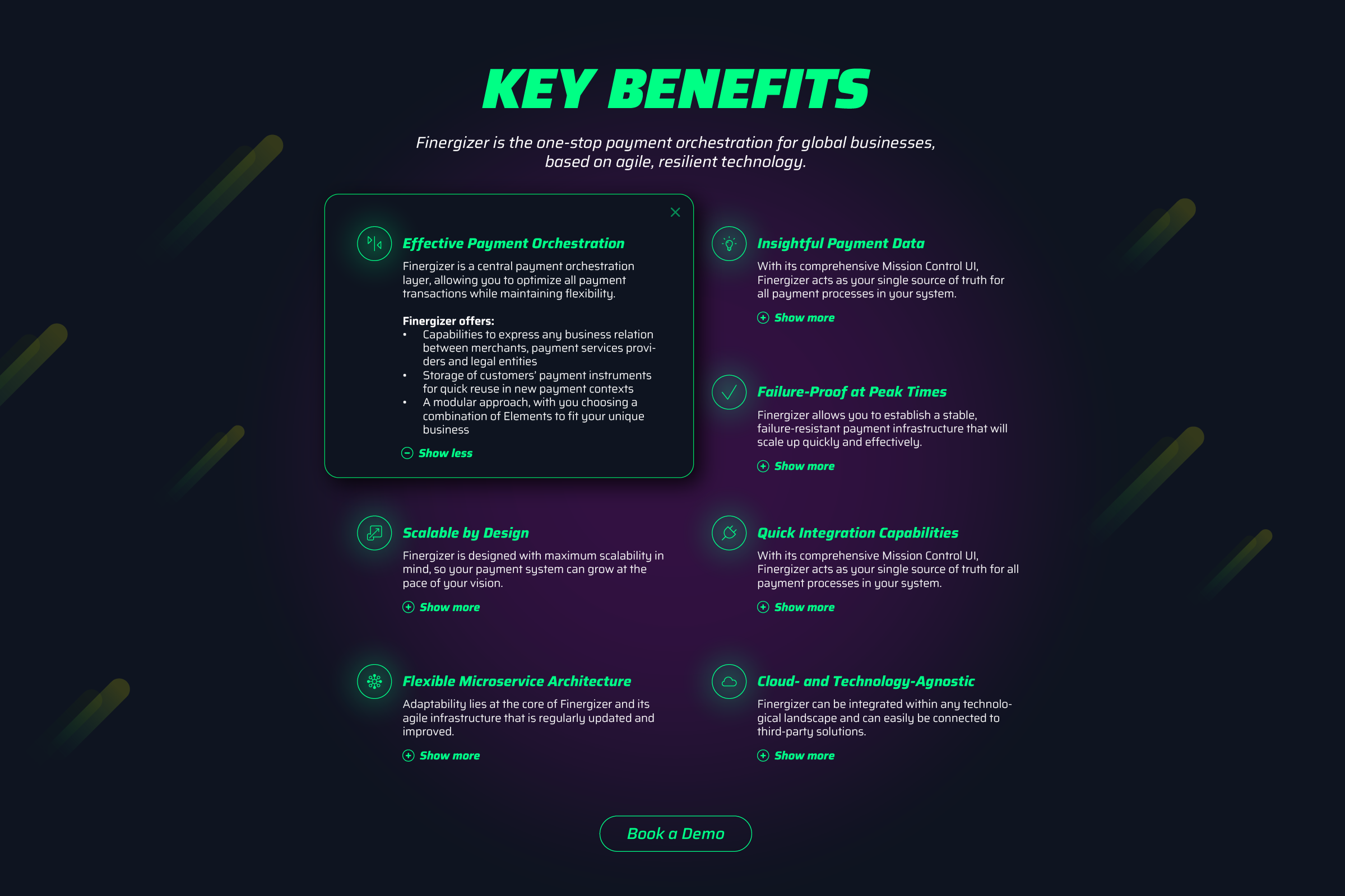 Kunde: trimplement URL: trimplement.com/finergizer Leistung: Visual Branding, UX/UI für Landingpage und Dokumentationsbereich, Illustration, Gestaltung von Marketing-Materialien